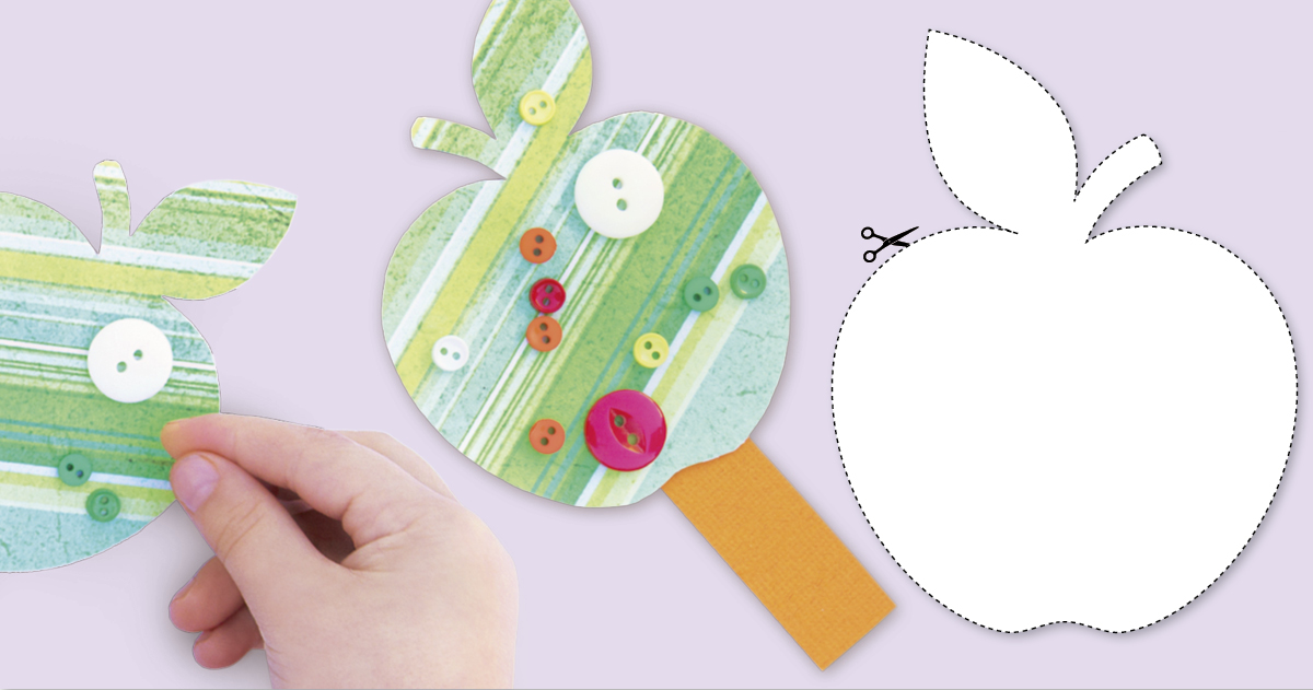 - Stick coloured paper onto the apple shape and cut it to fit.