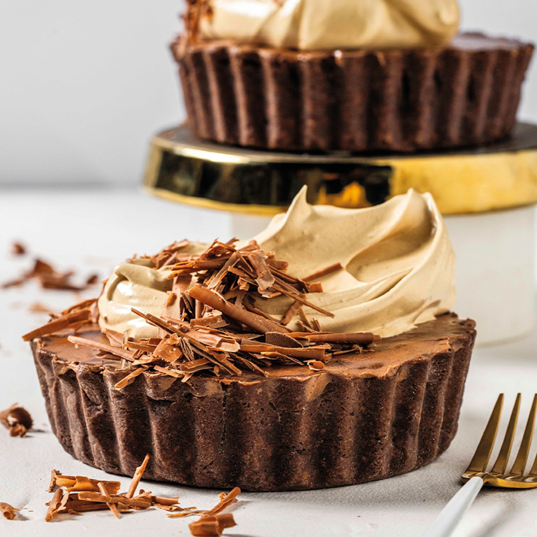 - Spoon dollops of dalgona whip on tartlets. Top with shavings and serve.