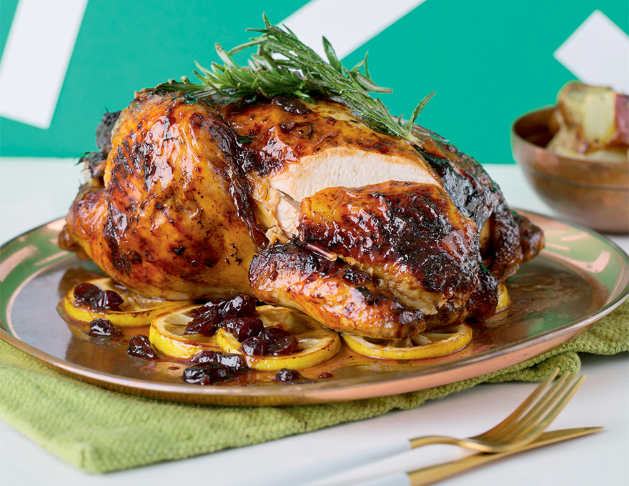 - Carve the cranberry and balsamic roast chicken to your liking and serve with roasted sweet potatoes.